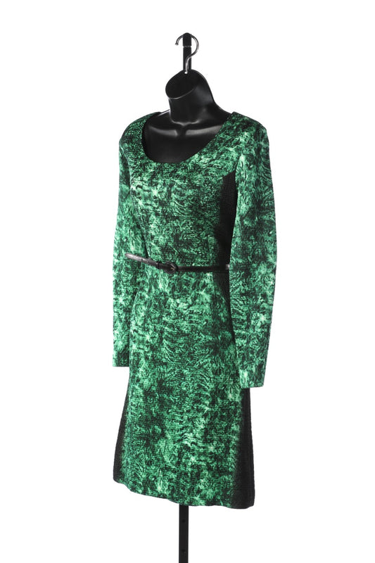 Oscar De La Renta Green + Black Scrunched Tie Dye Long Sleeve Dress NWT