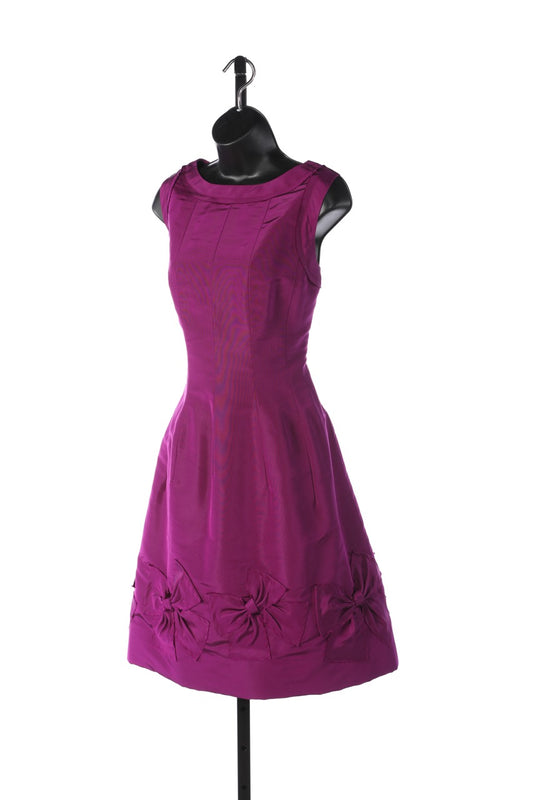 Oscar De La Renta Purple Sleeveless Structured Knee-Length Dress w/ Bows on Bottom