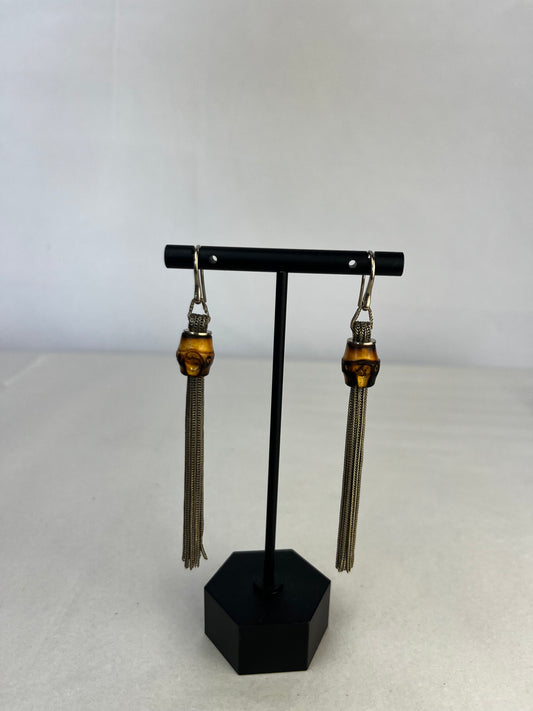 COMES WITH BOX - Gucci Silver Chain & Bamboo Bead Tassel Earrings