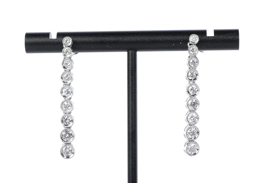 Clyde Duneier (CID) 18k White Gold 9 Tier Drop Diamond Bezel Earrings