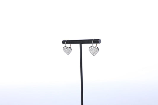 18k White Gold Danging Diamond Heart Earrings