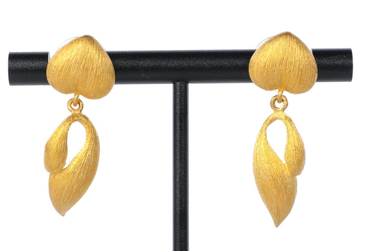 Brushed 24k Yellow Gold Heart & Leaf Dangling Earrings (Has Matching Bracelet) - 10g