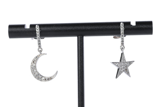 Ross-Simons Sterling Silver 0.29 ct. t.w. White Topaz Star & Moon Mismatched Drop Earrings