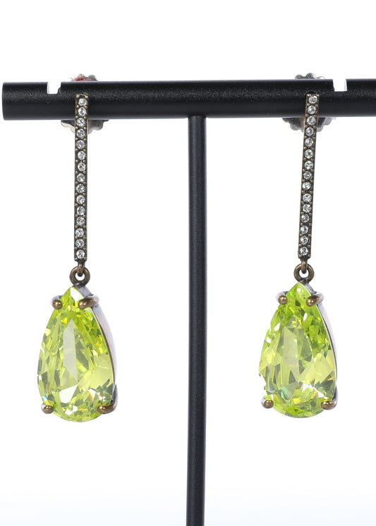 Pear Shape Green Peridodt Teardrop Dangly Earrings