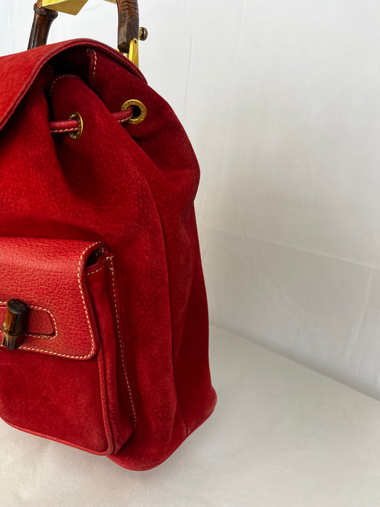 Gucci Red Nylon Monogram Double Buckle Flap Messenger Bag