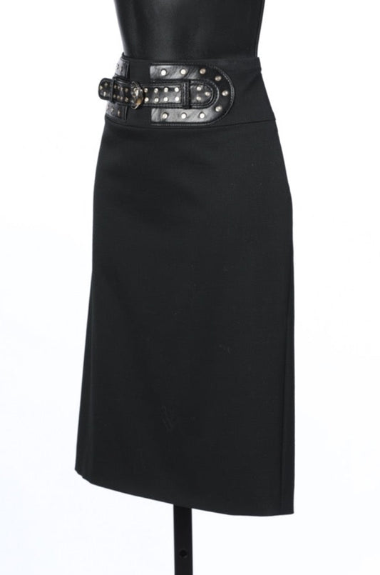 Gucci Black Knee-Length Front Buckle Skirt w Studs