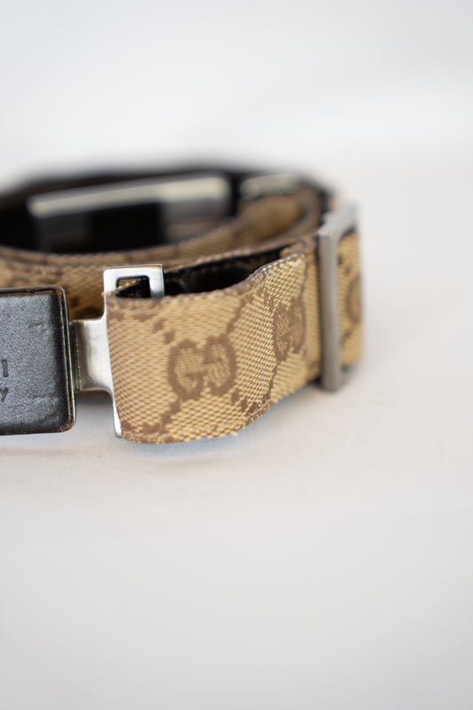 Gucci Brown Monogram Belt w/ Leather Buckle