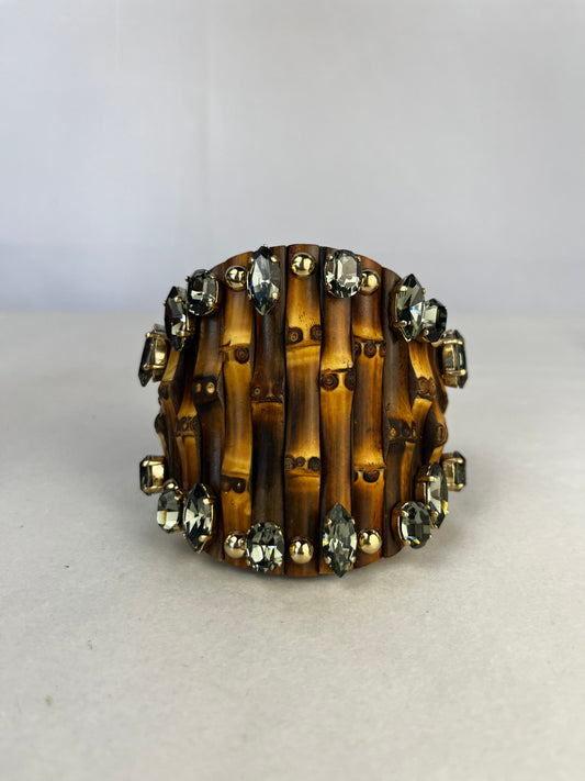 Gucci Genuine Bamboo & Blue Crystal Large Cuff Bracelet