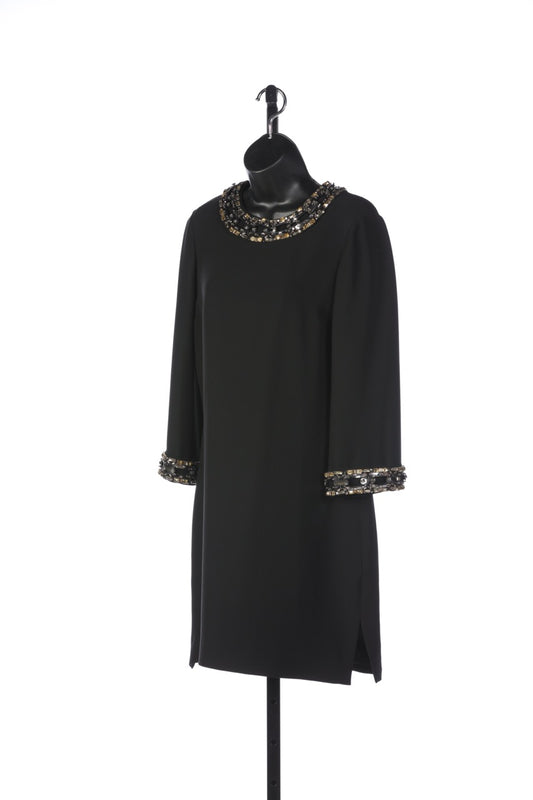 Gucci Long Sleeve Black Mini Dress with Rhinestone Chainlink Detail on Neckline & Cuffs