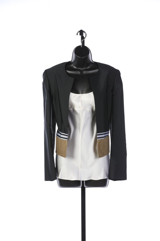 Gucci Black w/ Gold Cropped Collarless Jacket with Gold Metal Brooch