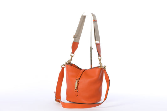 Gucci Orange "Jackie" Soft Leather Bucket Bag w Gold Hardware