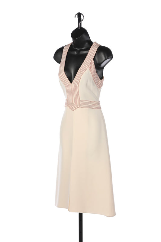 Gucci Silk Cream w Red Stitching V-Neck Sleeveless Midi Dress