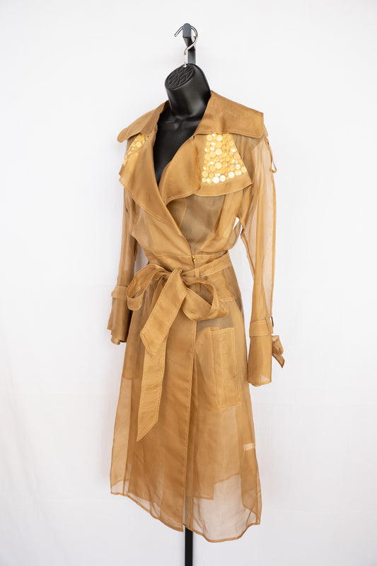 Rachel Roy Neutral Tan Sheer Long Sleeve Full-Length Jacket w Gold Button Detail NWT