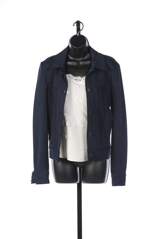 Alaia Navy Collared Button-Up Jacket with Raw Trim