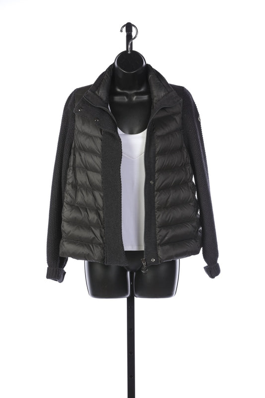 Moncler Grey Insulated Puffer Jacket with Knit Detail