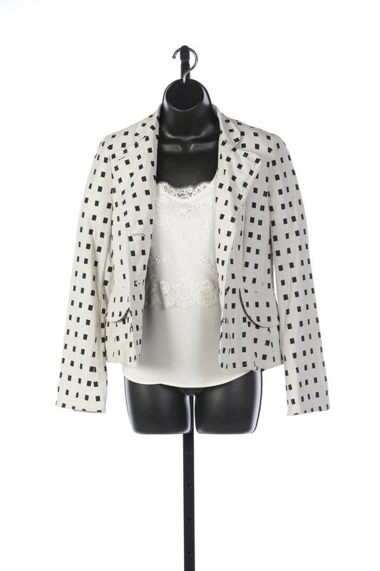 Akris Punto Black & White Square Print Jacket w Big Circle Buttons