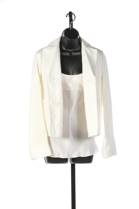 Jil Sander Cream Linen Collared Button Up Jacket w Pockets