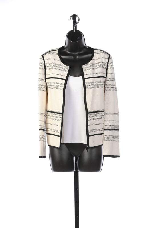 Lafayette 148 Black & White Woven Striped Zip Up Jacket