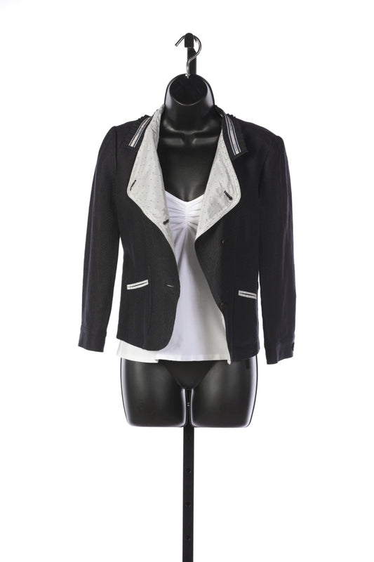 Barbara Bui Black Wool Jacket with Western Silver Beaded Clasp