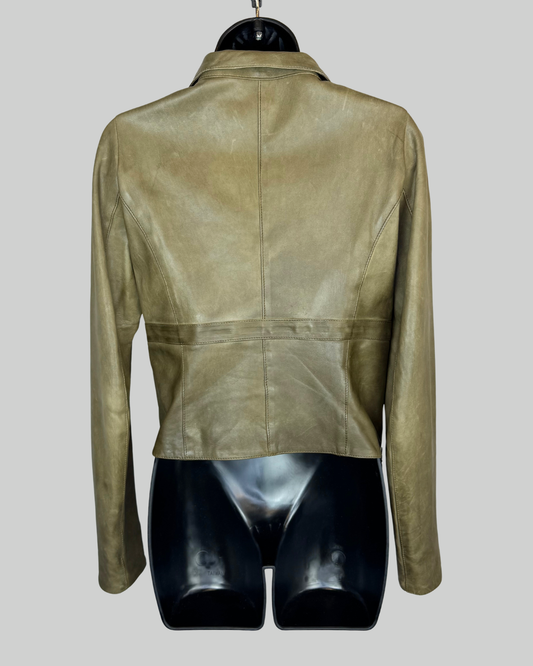 Roncarati Army Green Leather Cropped Jacket