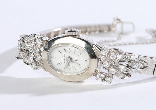 Vintage Lady Hamilton Classique Watch - Art Deco Style 14k White Gold with Diamonds
