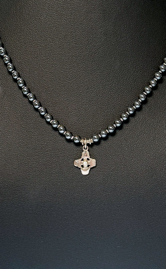 Lee Brevard 18K & Beaded Hematite Tiny Signature Cross with Stone Charm Pendant Necklace on