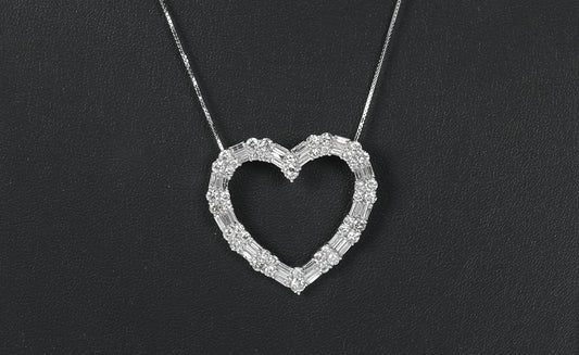 Ross Simons 3.00 ct. Round and Baguette Diamond Open Heart Necklace in 14kt White Gold