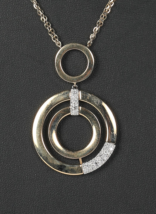 14K Yellow Gold & Rhodium-Plated 14k White Gold Circles with 0.29 Carats of Diamonds Lavalier Pendant Necklace