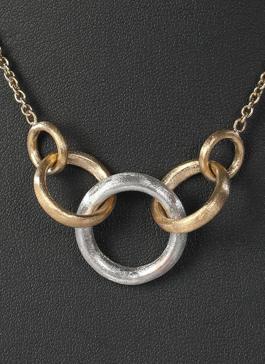 Rhodium-Plated 14K White Gold & 14K Yellow Gold Circle Pavé 32 Diamond (0.32 Carats) Station Necklace with Interlinking Hoops
