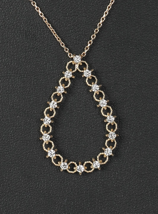 14k Yellow Gold Tear Drop 16 Diamond (.48 Carats) Pendant Necklace