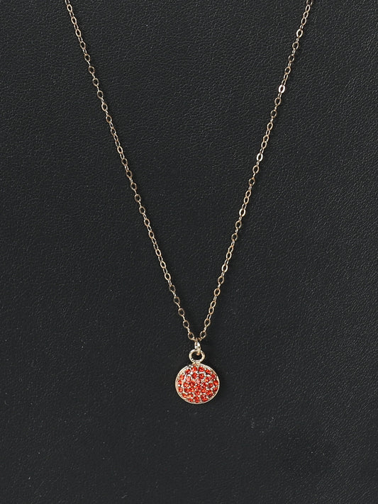 14k Gold Filled (1/20) Small Orange Pave Crystal Circle Pendant Long Necklace