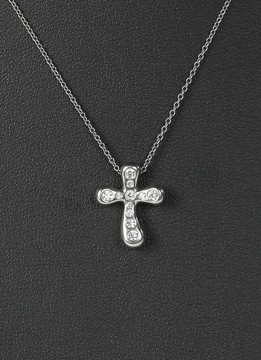 Tiffany & Co "Elsa Peretti" Platinum Diamond Cross Pendant Necklace .25CT