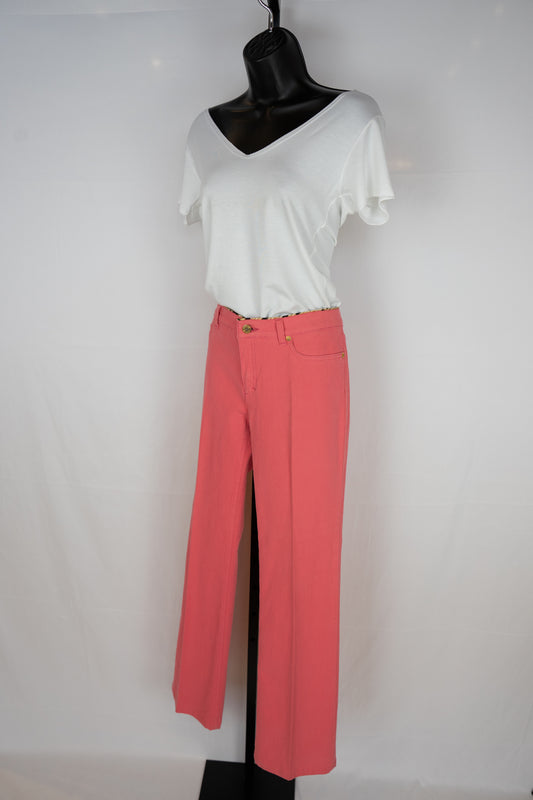 Roberto Cavalli Blush Pink Low-rise Bootcut Pants w/ Gold Rhinestone Plate on Pocket