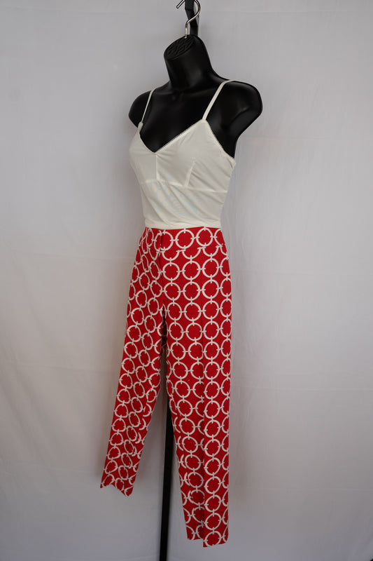 Escada Red Tweed Pants w/ White Connected Circle Detail Straight Leg Pants