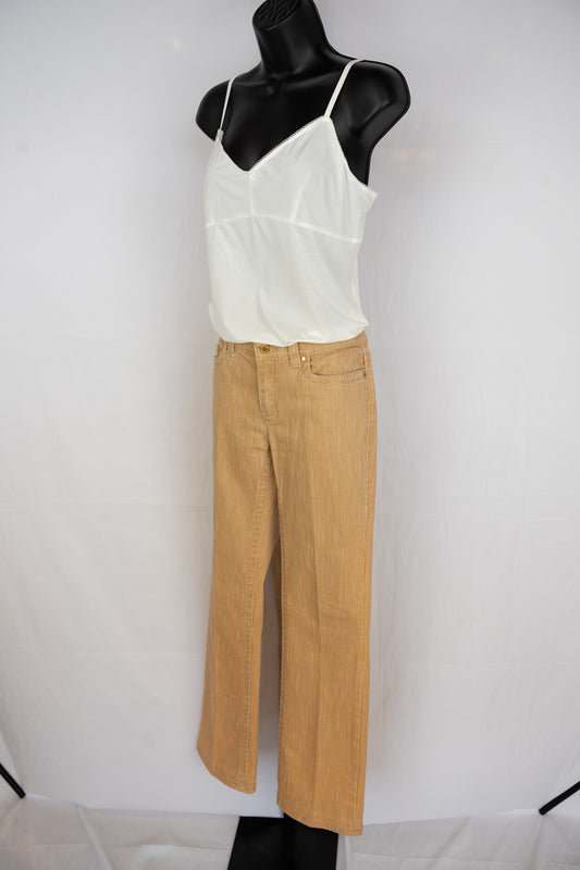 Roberto Cavalli Tan Low-rise Bootcut Pants w/ Gold Rhinestone Plate on Pocket