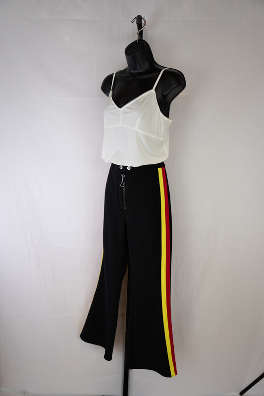 Ellery Black w Red/Yellow Stripe Flare Pants w Large Middle Front Zipper