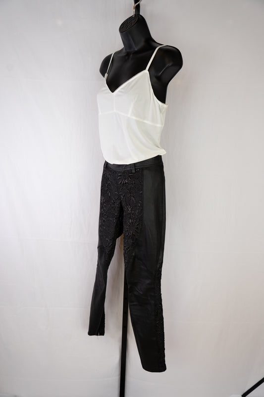 Faith Connexion Leather Black Embellished Leggings w Zipper at Ankles