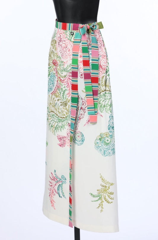 Loro Piana White & Multicolor Abstract Floral Silk Midi Skirt