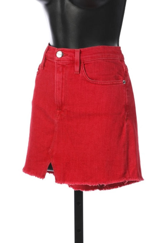 Frame Denim Red Mini Skirt w Mini Slit at Front