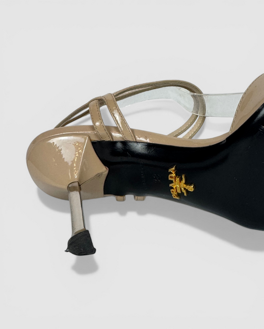 HAS DUSTBAG - Prada Beige Patent Leather Strap Stiletto Heels