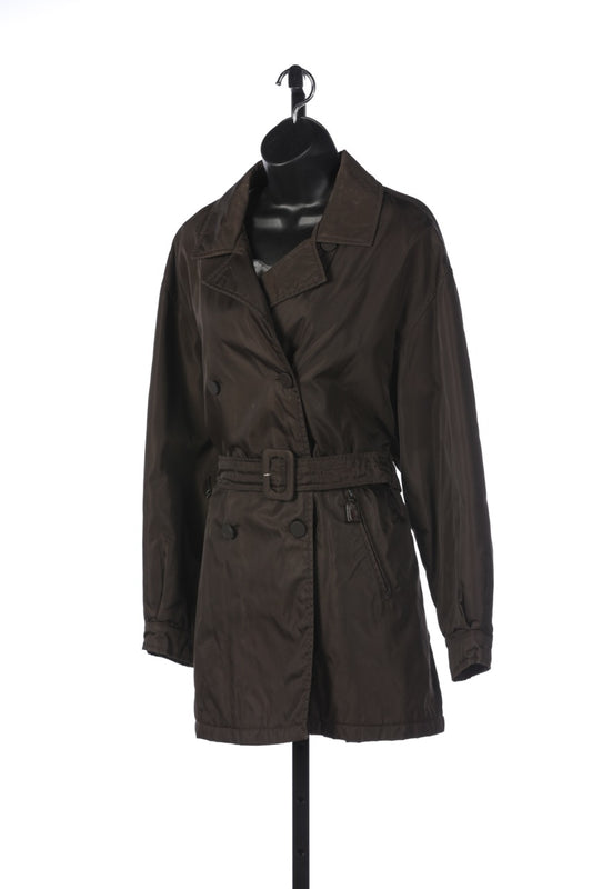 Prada Vintage 90's Brown Button Up Trench Coat with Belt