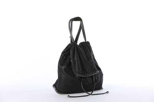 Stella McCartney Black Vegan Leather "Falabella" Backpack w Chain Detail