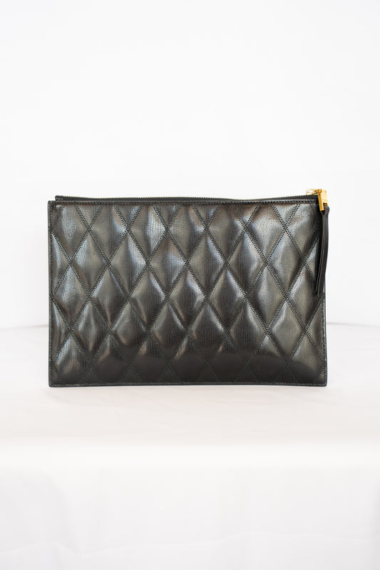 Givenchy Black Leather Quilted Clutch Zipper Pouch