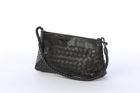 Bottega Veneta Black Woven Leather Mini Handle Bag with Magnetic Frame Closure