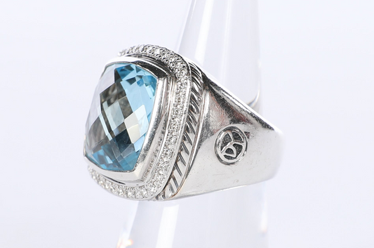 David Yurman Albion® Ring Sterling Silver with Blue Topaz and Diamonds, 14mm (Size 6)
