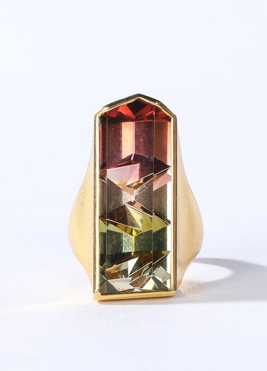 Watermelon Tourmaline 18K Gold Rectangular Ring