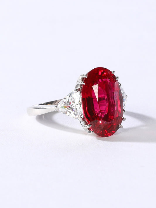 Fantasia by DeSerio 14k White Gold Lab Grown Red Ruby (9ct) & Trillion-cut CZ Ring