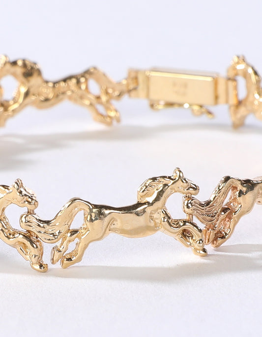 14k Yellow Gold Running Horse Link Bracelet - 17g