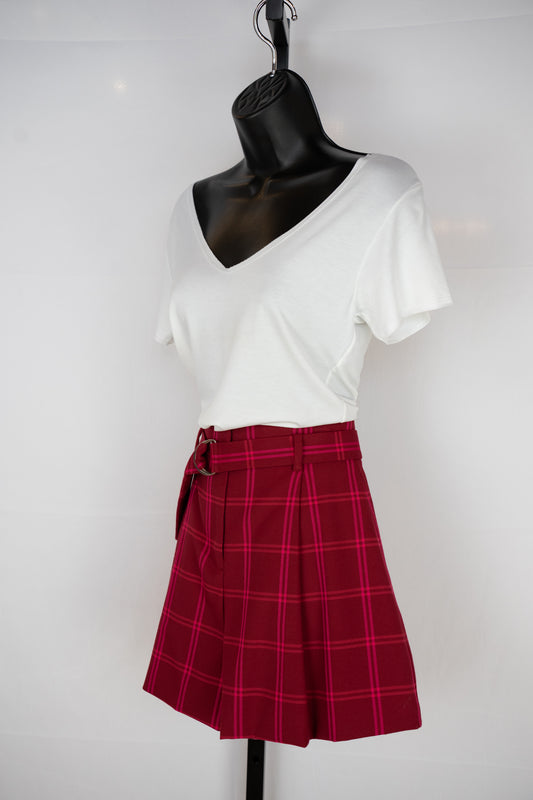 Jonathan Simkhai Red w Pink Plaid Mini Shorts w Belt