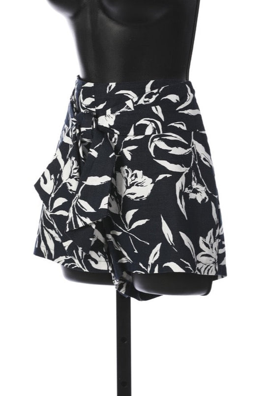 J.O.A Navy & White Linen Floral Shorts w Waist Tie